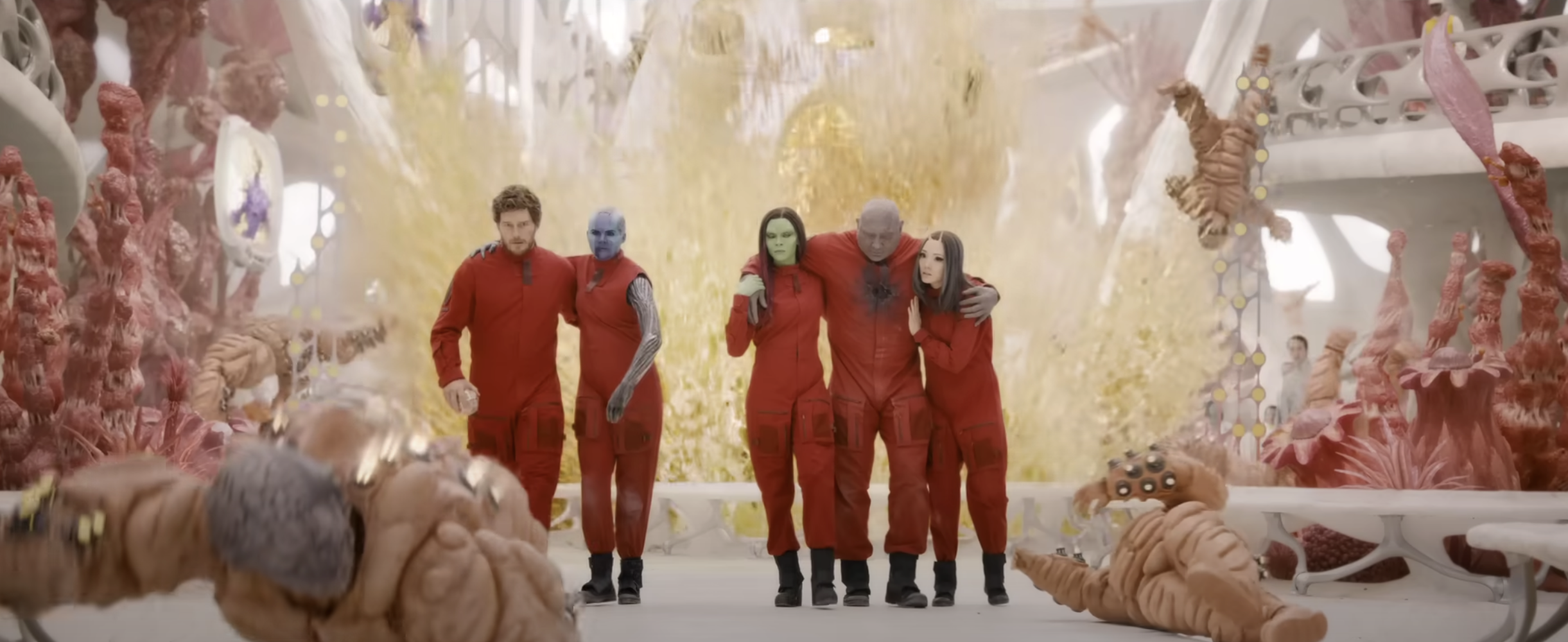 - 크리스 프랫, 조 샐다나, 데이브 바티스타, 빈 디젤, 브래들리 쿠퍼, 카렌 길런, 폼 클레멘티프, 숀 건, 축워디 이워지, 윌 폴터, 엘리자베스 데비키, 마리아 바칼로바, 실베스터 스탤론